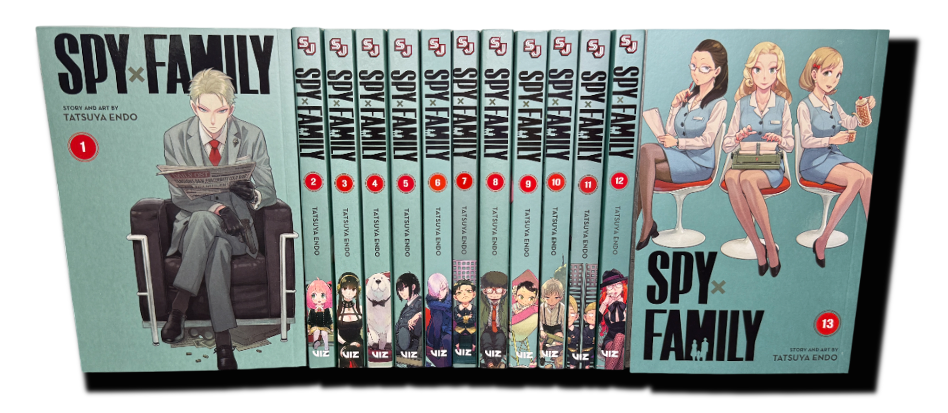 This listing features Volumes 1 through 14 of Spy x Family, the hit manga series by Tatsuya Endo that perfectly blends espionage, comedy, and heartwarming family moments.
